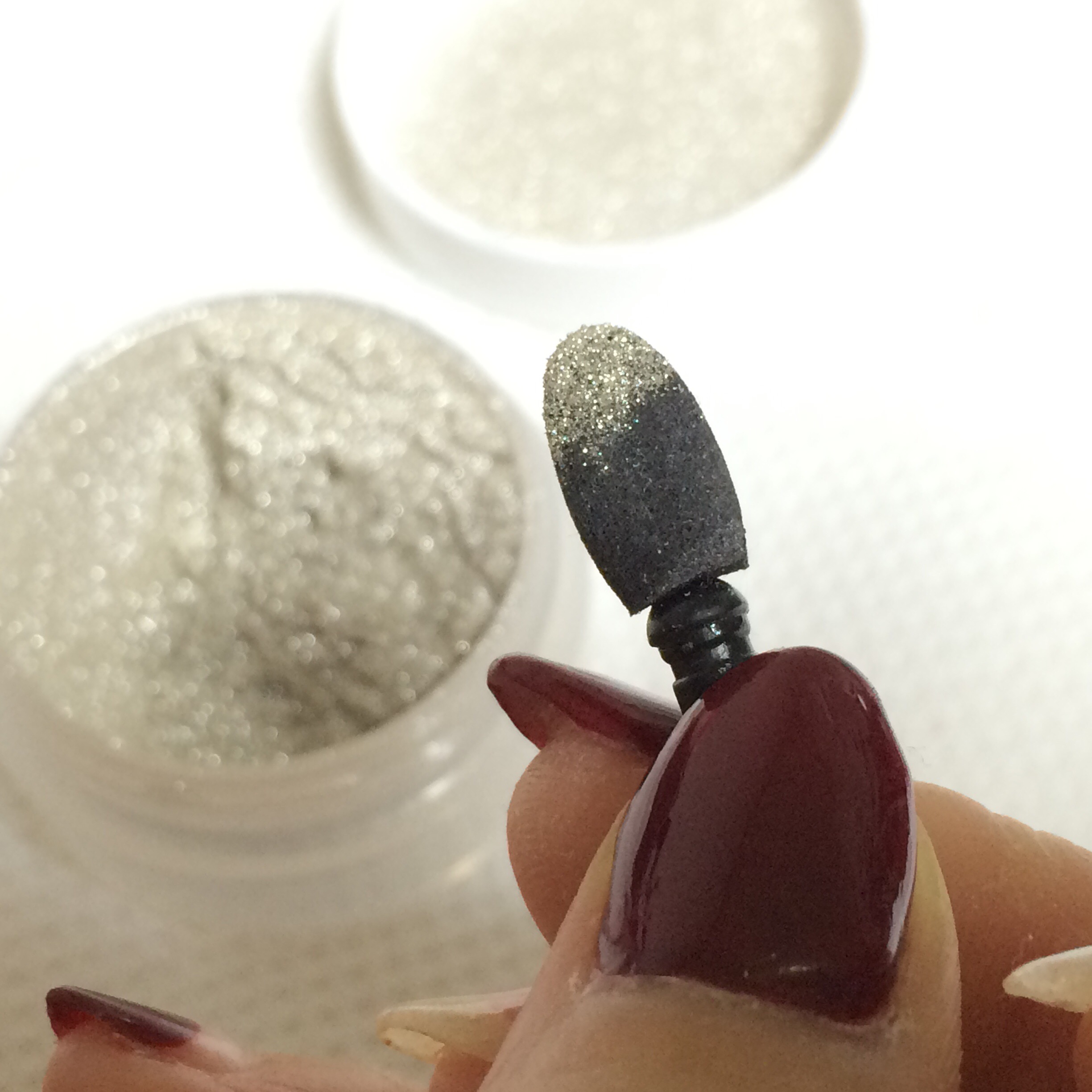 - クロムパウダーを擦る(量は、多すぎない方がキレイに仕上がりますので、少量とってください)