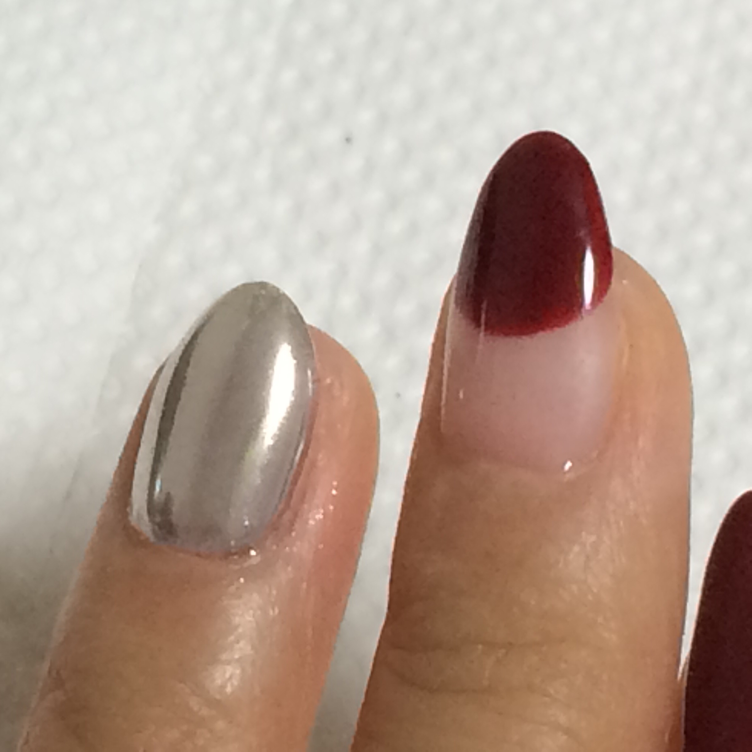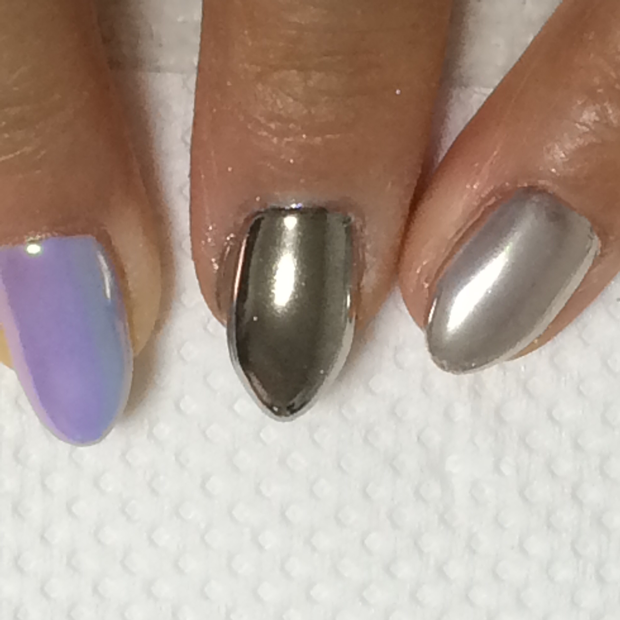 こんな感じに、ポイントにミラーネイルが素敵ですよ✨![]()